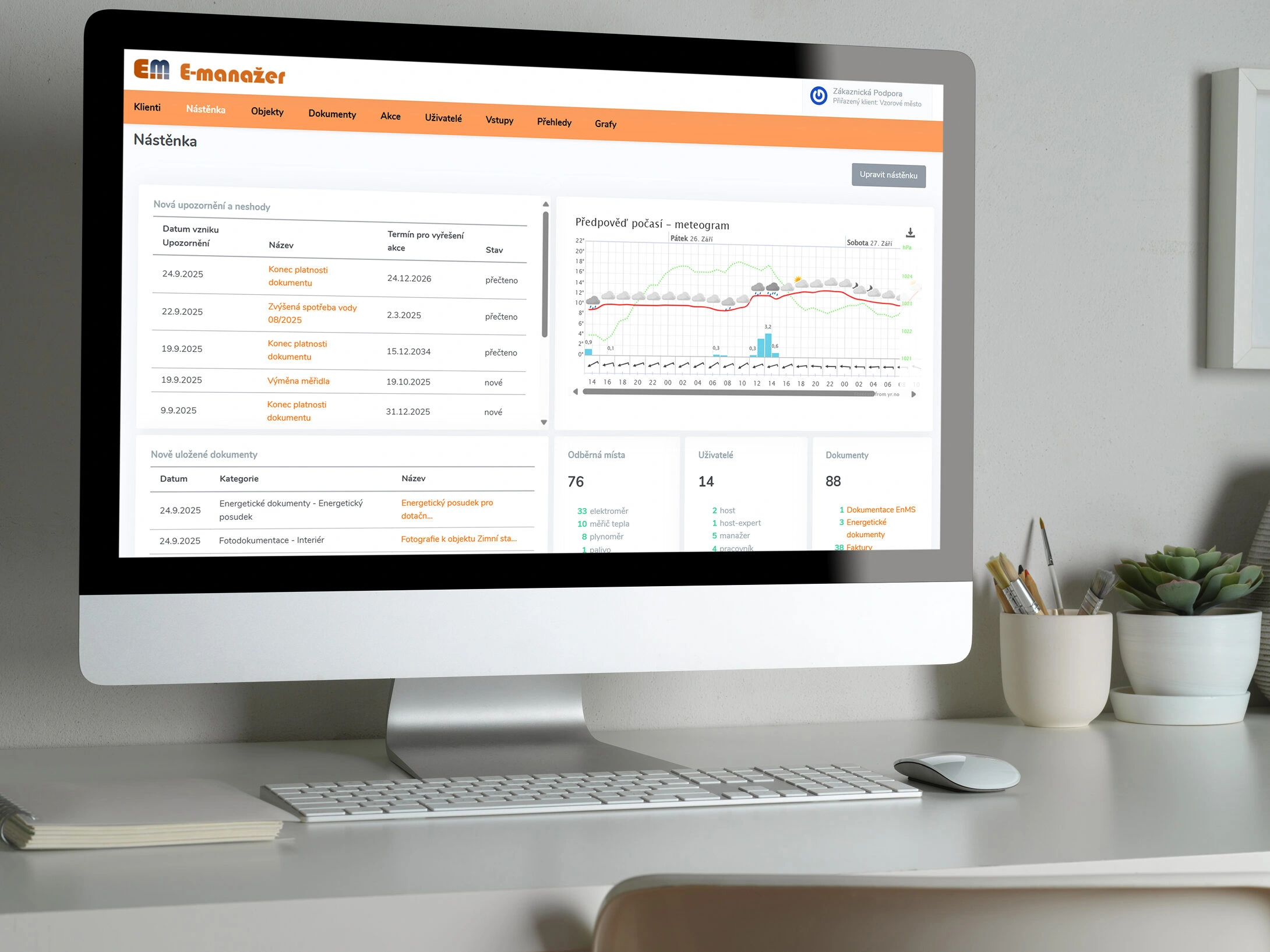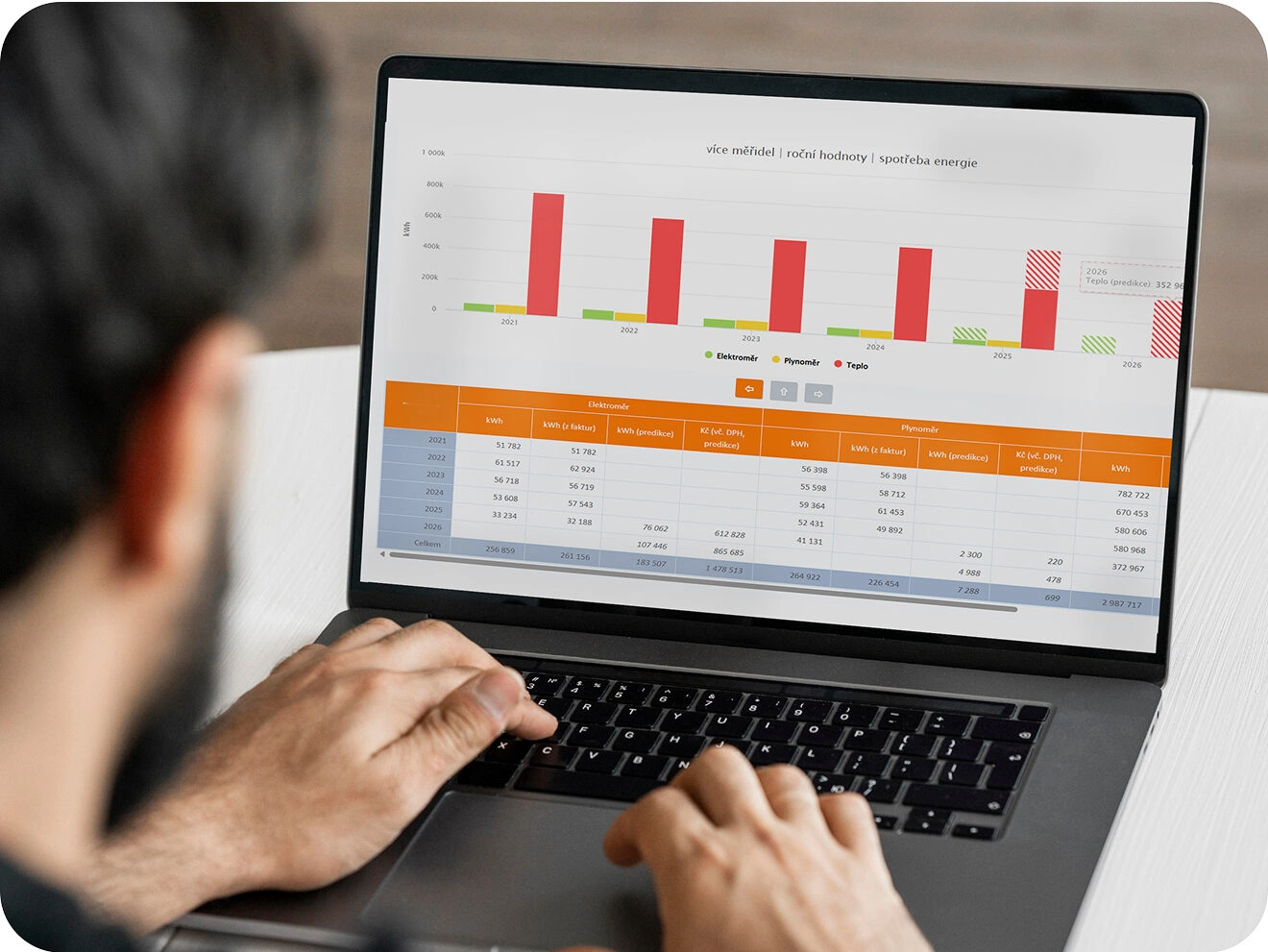 e-manažer vám pomůže mít spotřebu a náklady pod kontrolou, plánovat úsporná opatření a splnit legislativní povinnosti.